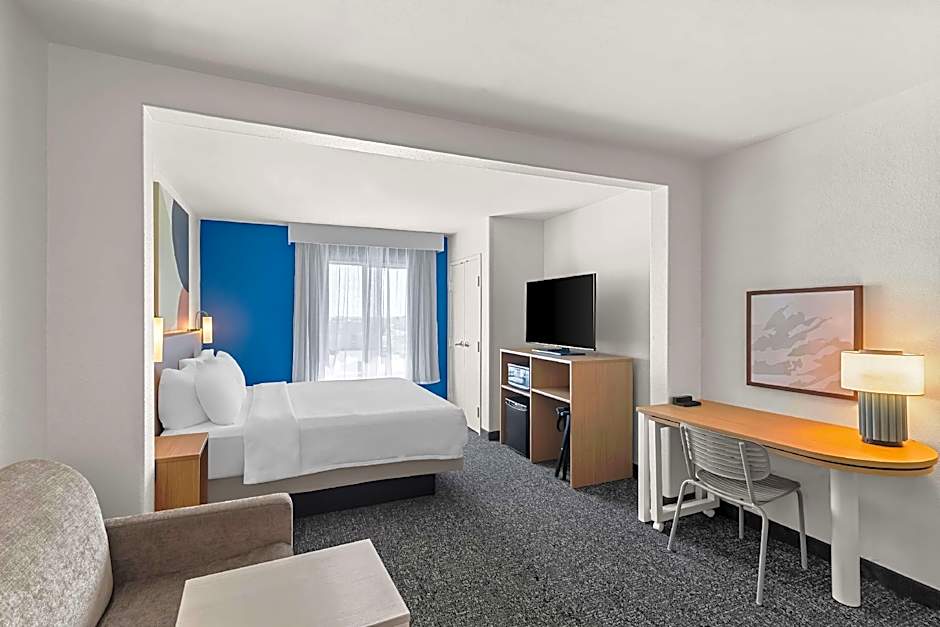 The suite offers air conditioning, a tea and coffee maker, as well as a private bathroom featuring a shower and a hairdryer. The suite is furnished with a desk and a seating area.